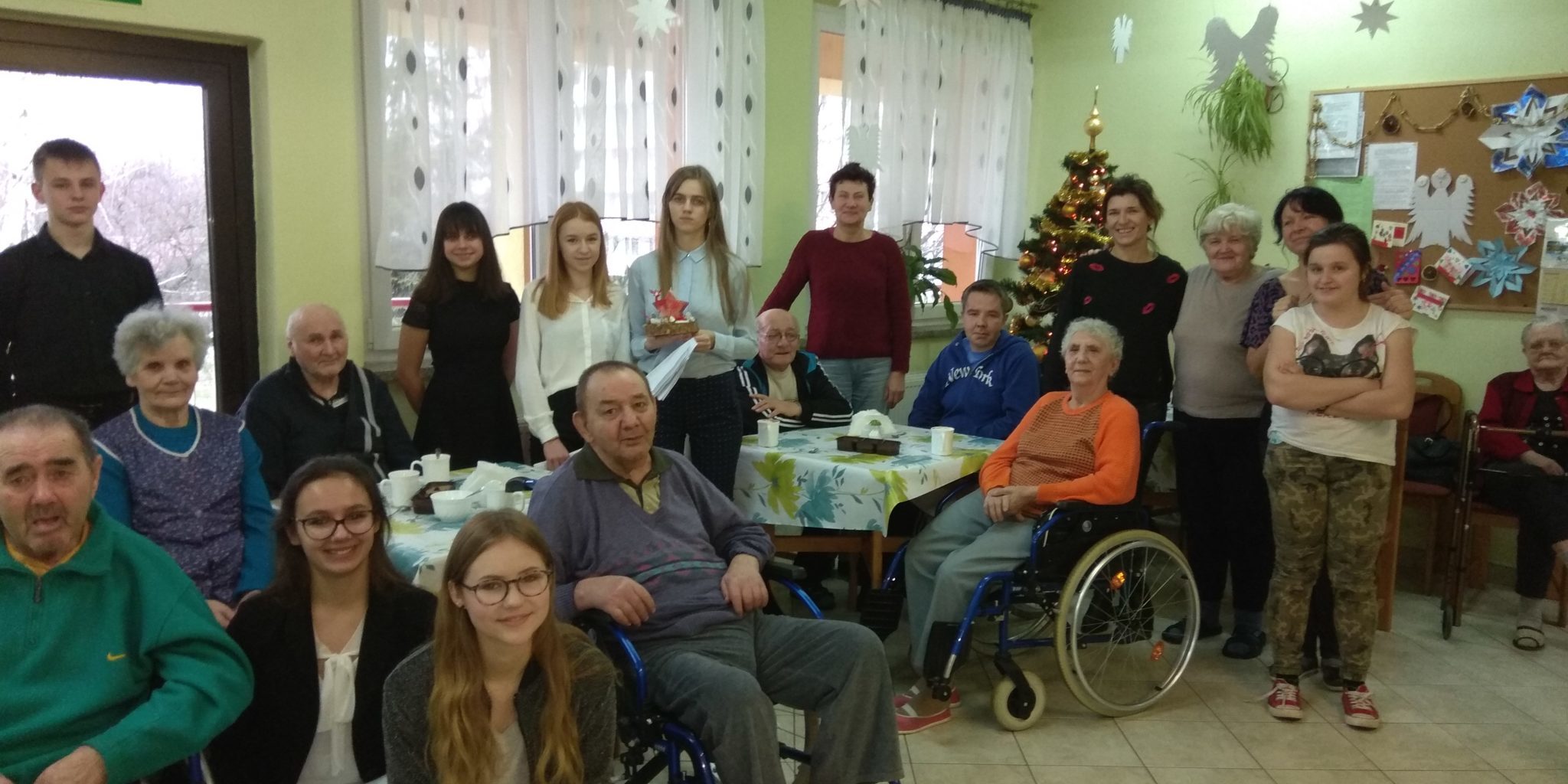 Dziewczęta z klasy IB i Paweł Gwóźdż z IA śpiewali kolędy dla pensjonariuszy MOPS-u. Uczniowie złożyli życzenia bożonarodzeniowe i noworoczne oraz podarowali prezenty.