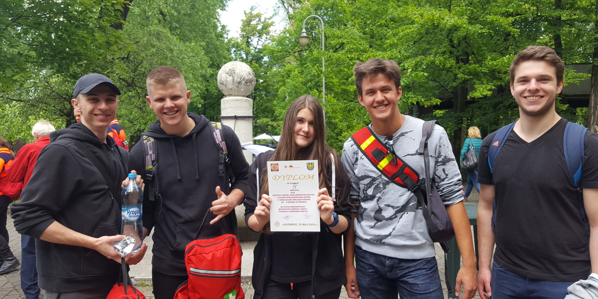 W dniu 19 maja 2018 roku w Katowicach odbyły się na etapie wojewódzkim XXVI Mistrzostwa Pierwszej Pomocy Polskiego Czerwonego Krzyża. Z dumą możemy poinformować, że drużyna z naszej szkoły w składzie: Estera Kuwik, Jakub Solak, Bartłomiej Dąbrowski, Wojciech Lewandowski oraz Michał Truszkowski wywalczyła dla “Miarki” czwarte miejsce. W zawodach wzięło udział 11 zespołów medycznych ze szkół ponadgimnazjalnych. Uczniowie musieli wykazać się wiedzą praktyczną z udzielania pierwszej pomocy w 4 pozoracjach urazowych. Rozwiązywali również test wiedzy z zasad udzielania pierwszej pomocy, wiedzy o CK i MPH. Gratulacje 😊
