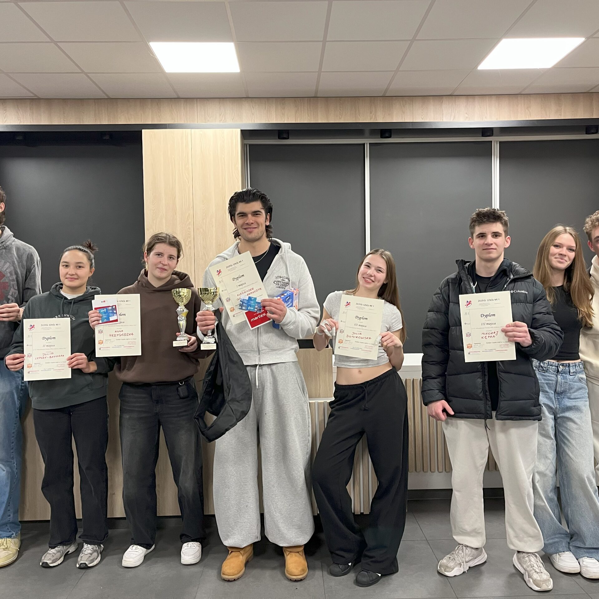 Aktywność fizyczna jest doskonałą zabawą, tworzy pozytywne relacje i pozwala czerpać satysfakcję z pokonywania własnych słabości i dlatego 10 grudnia w naszej szkole odbył się już VII Mikołajkowy Turniej Piłki Siatkowej Miksty 2024. Do zawodów rozgrywanych systemem brazylijskim zgłosiło się 20 par. Na I miejscu uplasowała się drużyna w składzie: Ania z kl. IVD LO i Alex z kl. IVE LO. II miejsce wywalczyli: Julia z kl. IV E LO i Michał z kl. IVD LO. Na III miejscu znaleźli się: Julka z kl. IIE LO i Mikołaj z kl. IIIF LO. Trwające ponad 5 godzin rozgrywki mogły tylko ukoić atrakcyjne nagrody ufundowane przez: Park Wodny Aquarion, Urząd Miasta Żory, MOSiR Żory, kino „Na Starówce”, Radę Rodziców ZS nr 1 oraz nauczycieli wychowania fizycznego. Dziękujemy za mecze pełne emocji 🙂