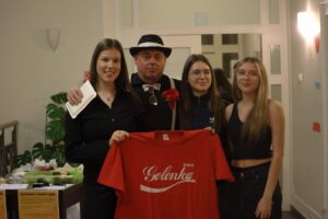 A o wspomnienia związane z jednymi z pierwszych edycji zapytaliśmy również Panią Sonię Bohosiewicz: – Jakie są Pani najlepsze wspomnienia związane z Gimpelczadem? – Czy lata nauki w Miarce oraz gimpelczad miały wpływ na Pani karierę aktorską? “ Małe miasteczka potrafią być centrum świata. Gimpelczad narodził się w naszych głowach. To była chyba pierwsza inicjatywa i pierwsza realna chęć, którą udało nam się naprawdę zrealizować. Dało nam to potężne poczucie sprawczości — że możemy, że od nas coś zależy. Ogromna w tym zasługa pana profesora Hermana, który nam to ułatwiał i przez cały czas dmuchał nam w skrzydła. Ta sprawczość została ze mną na lata i do dziś jest dla mnie źródłem dumy. Nigdy nie miałam poczucia, wychodząc w świat — do Krakowa i dalej — że jestem „z małego miasteczka”. Nikt z nas tak nie myślał. Małe miasteczka potrafią być centrum świata. Nasze liceum było miejscem wyjątkowym: nie tylko marzyliśmy, ale realnie te marzenia realizowaliśmy. Trwałym świadectwem i pomnikiem tamtego czasu jest właśnie Gimpelczad. Po raz pierwszy stanęłam wtedy na scenie jako prowadząca, konferansjerka, razem z Maćkiem Tarasinem. Wystąpiliśmy w szkockich spódnicach w czerwoną kratę — to było ogromne spełnienie marzenia Maćka- uważał, że ma świetne nogi i bardzo chciał w takiej spódnicy wystąpić i tak poprowadziliśmy pierwszy Gimpelczad, w szkockich kiltach. Być może Gimpelczad od początku miał być miejscem spełniania marzeń — i dokładnie tym się stał. To poczucie sprawczości zostało we mnie do dziś. Teraz sama piszę, produkuję swoje spektakle, nie czekam na propozycje — sama kreuję swój świat. Jestem pewna, że dla wielu z nas tamten moment był naprawdę formujący. Gimpelczad dzięki następnych Miarkowiczom przetrwał, tak jak przyjaźnie w naszej 4A nie zakończyły się wraz z maturą. Za 2 miesiące jedziemy “klasowo” razem żeglowac do Grecji. Na pewno będzie z nami gitara i co wieczór będziemy śpiewać niejedną piosenkę z repertuaru Gimpelczadu.” – Sonia Bohosiewicz
