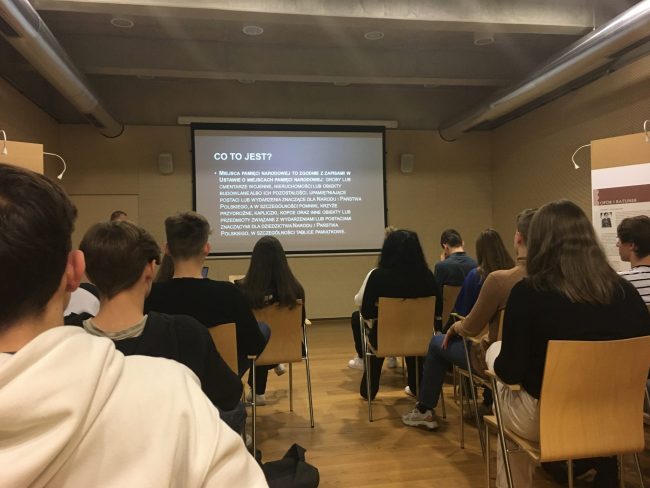W ramach akcji „Szkoła pamięta” uczniowie klasy II B brali udział w zajęciach dotyczących ważnych wydarzeń w dziejach Żor. 3 i 22 listopada odwiedzili miejsca niezwykle istotne dla historii miasta: mogiłę Powstańców Śląskich, pomnik Żołnierzy Wyklętych, mogiłę Żołnierzy Września 1939 r., mogiłę Więźniów KL Auschwitz. 22 listopada uczniowie uczestniczyli również w wykładzie (MIEJSCA PAMIĘCI…