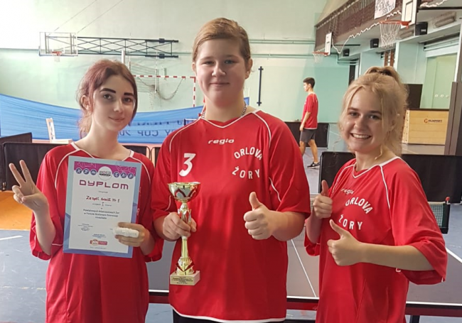 Dnia 29 września odbyły się Miejskie Zawody Tenisa Stołowego. Reprezentacja naszych dziewcząt w składzie: Katarzyna Bartuś, Alicja Pajdo i Monika Abrahamczyk zajęły I MIEJSCE. Równolegle walczyli chłopcy w składzie: Nikodem Kostka, Karol Szczygieł i Bartosz Rożek, którzy zajęli IV miejsce. Wszystkim. Gratulujemy 🙂
