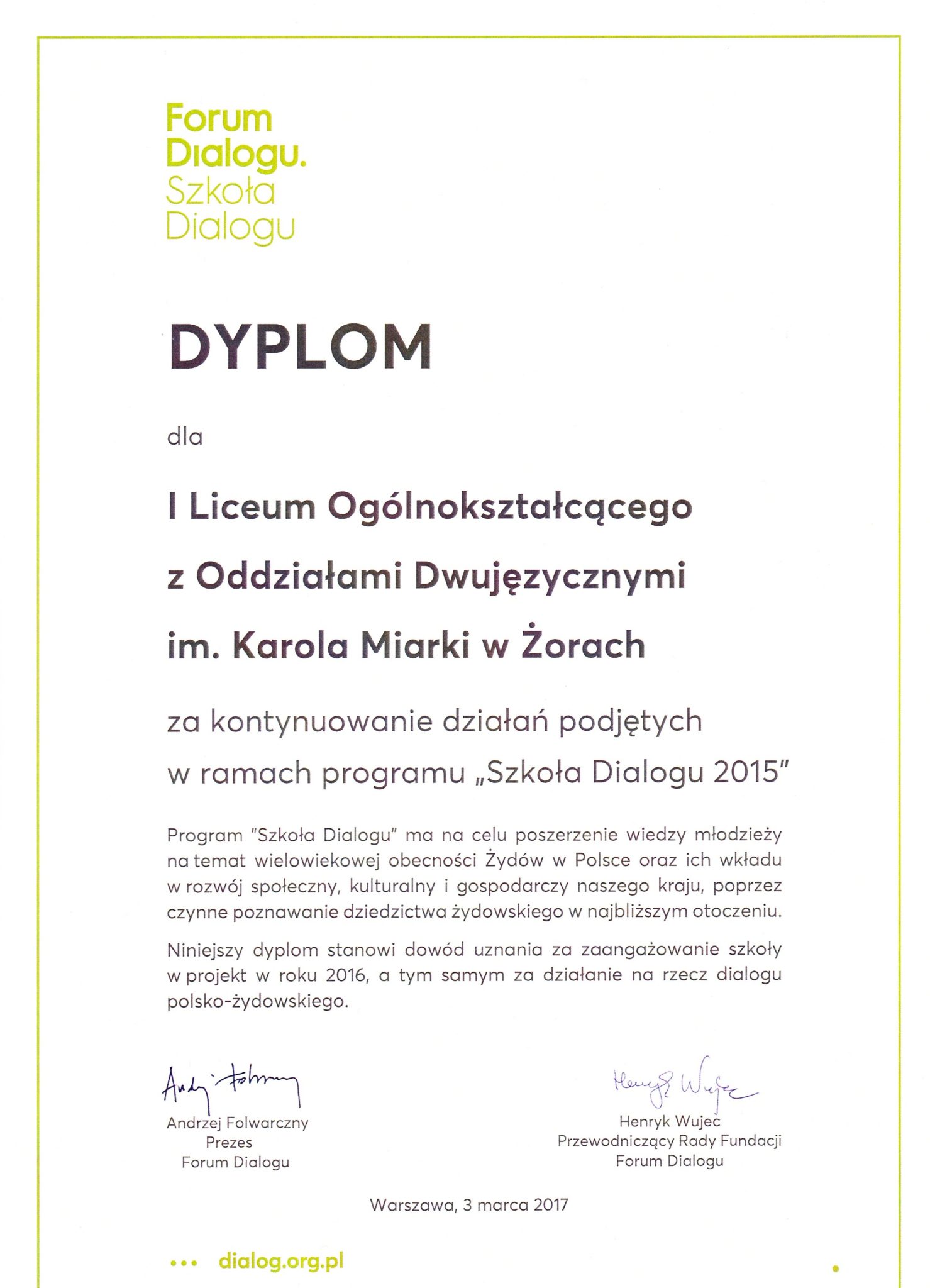 • “Miarka: szkoła z tradycją – wzmocnienie potencjału edukacyjnego I Liceum Ogólnokształcącego z Oddziałami Dwujęzycznymi im. Karola Miarki w Żorach”